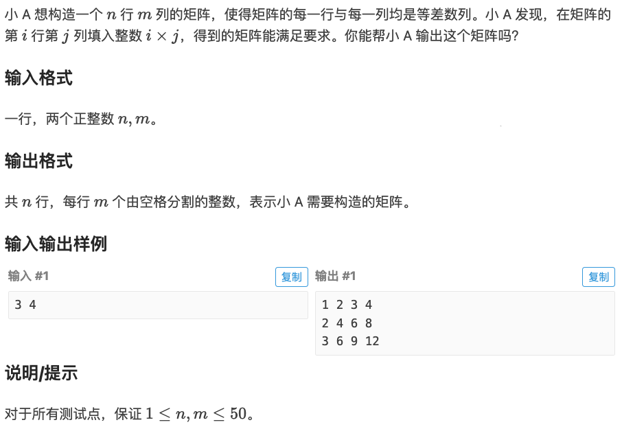 3664: [GESP202503 二级] 等差矩阵