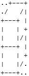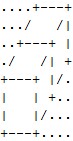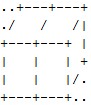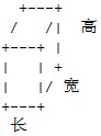 每个顶点用1个加号‘+’表示,长用3个‘-’表示,宽用1个‘/’表示,高用2个‘|’表示。字符‘+’ ‘-’ ‘/’ ‘|’的ASCII码分别为43,45,47,124。字符‘.’(ASCII码46)需要作为背景输出,即立体图里的空白部分需要用‘.’代替。立体图的画法如下面的规则: